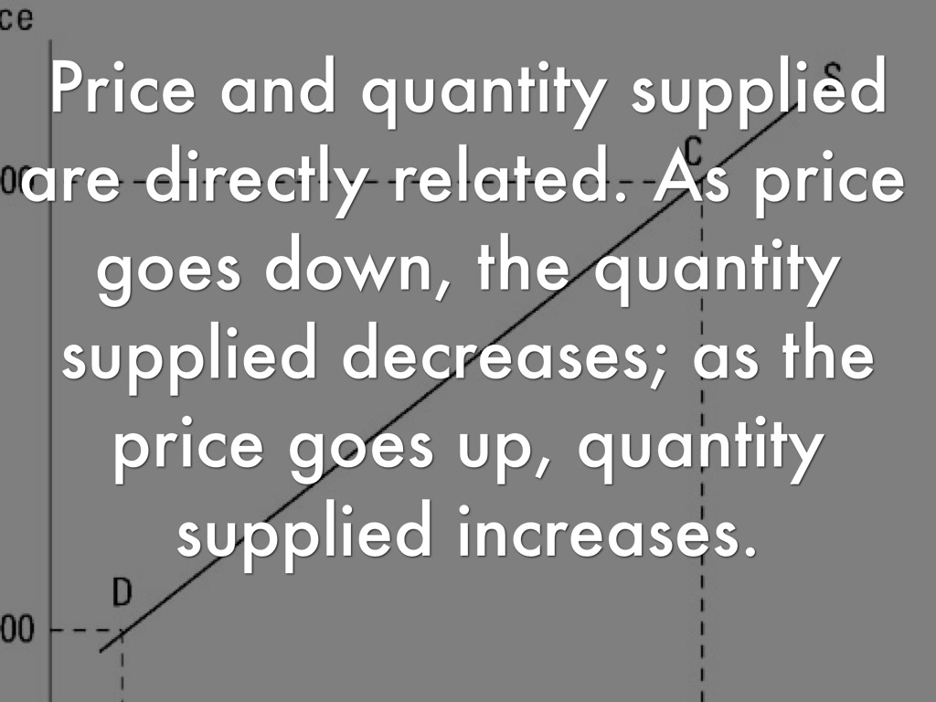 Price and quantity supplied are directly related. As price goes down, the quantity supplied decreases; as the price goes up, quantity supplied increases.