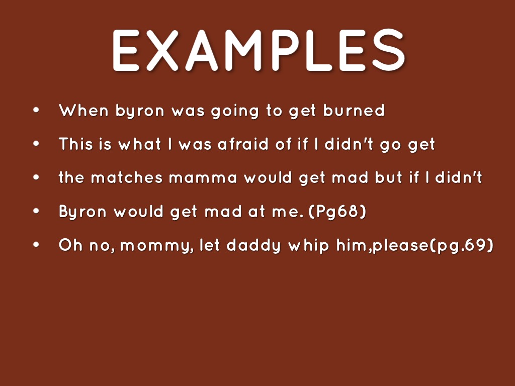 Oh no, mommy, let daddy whip him,please(pg.69)