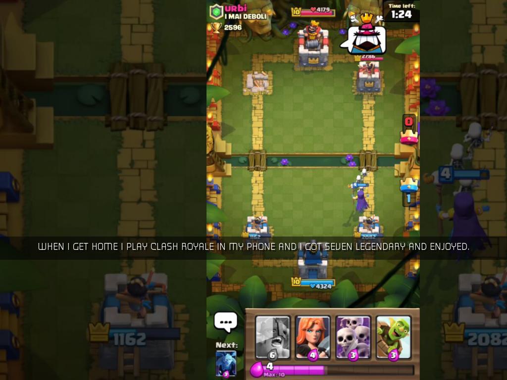 WHEN I GET HOME I PLAY CLASH ROYALE IN MY PHONE AND I GOT SEVEN LEGENDARY AND ENJOYED.