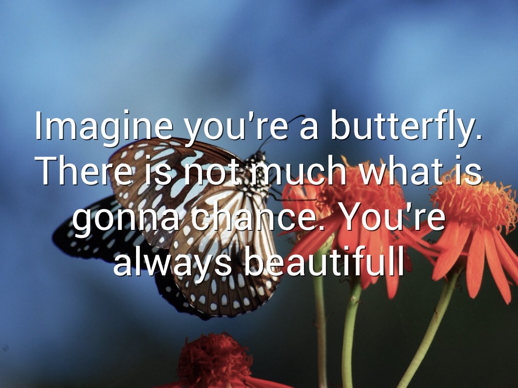 Imagine you're a butterfly. There is not much what is gonna chance. You're always beautifull
