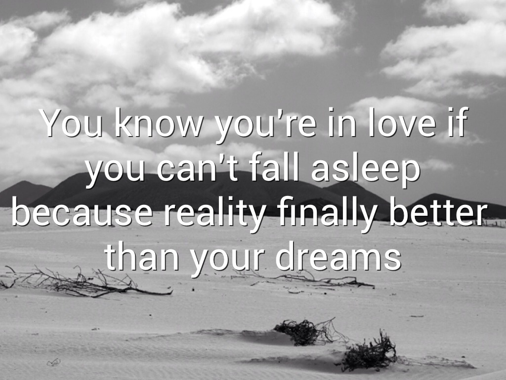 You know you're in love if you can't fall asleep because reality finally better than your dreams