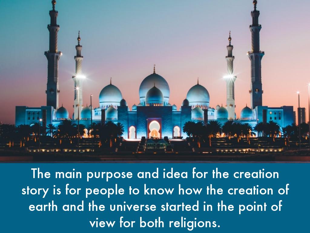The main purpose and idea for the creation story is for people to know how the creation of earth and the universe started in the point of view for both religions.