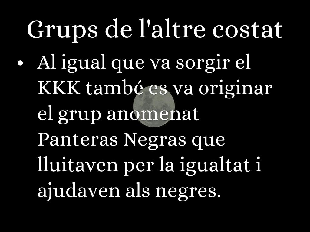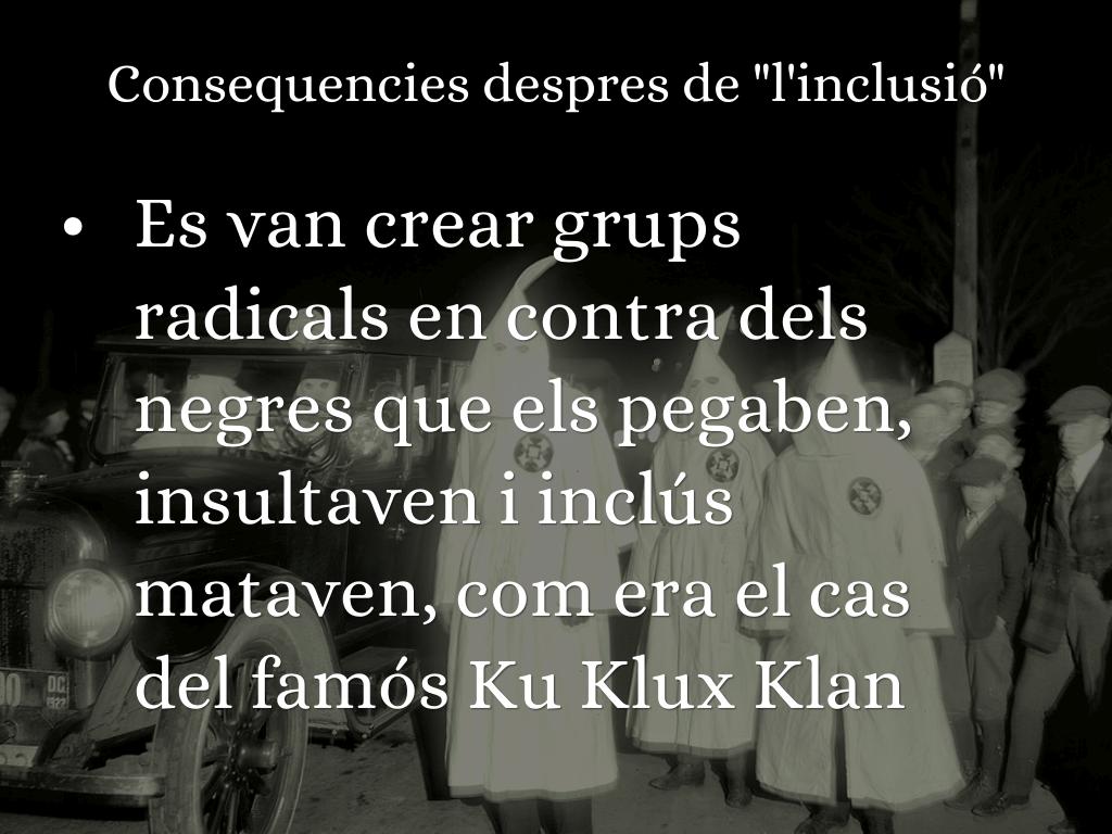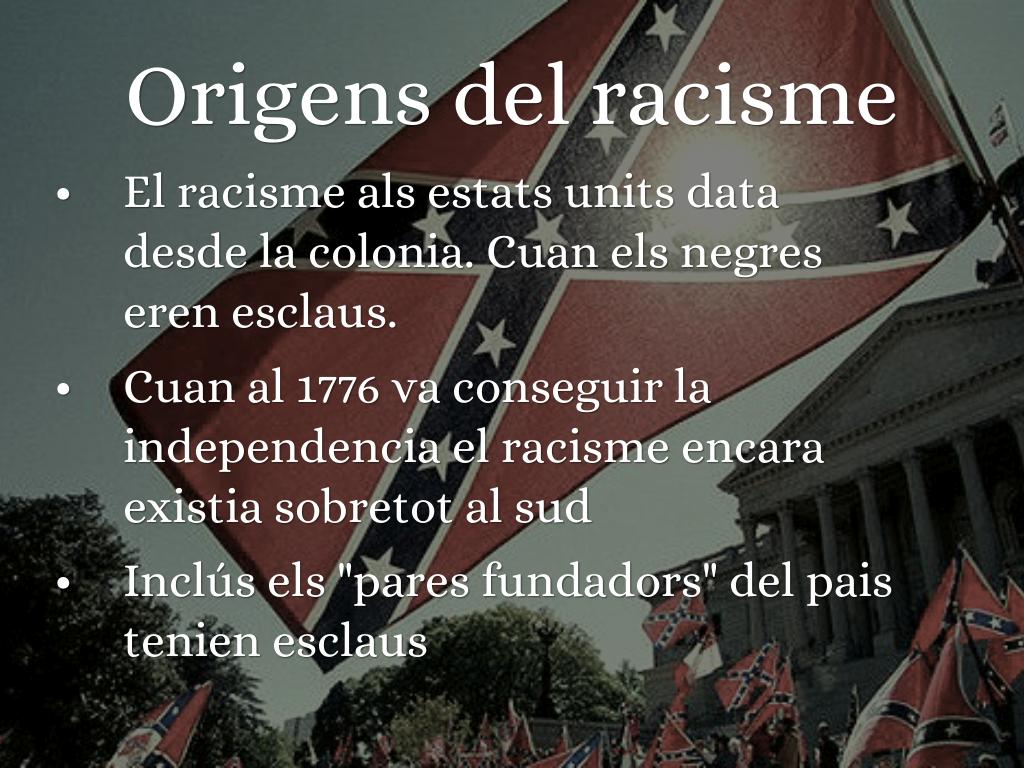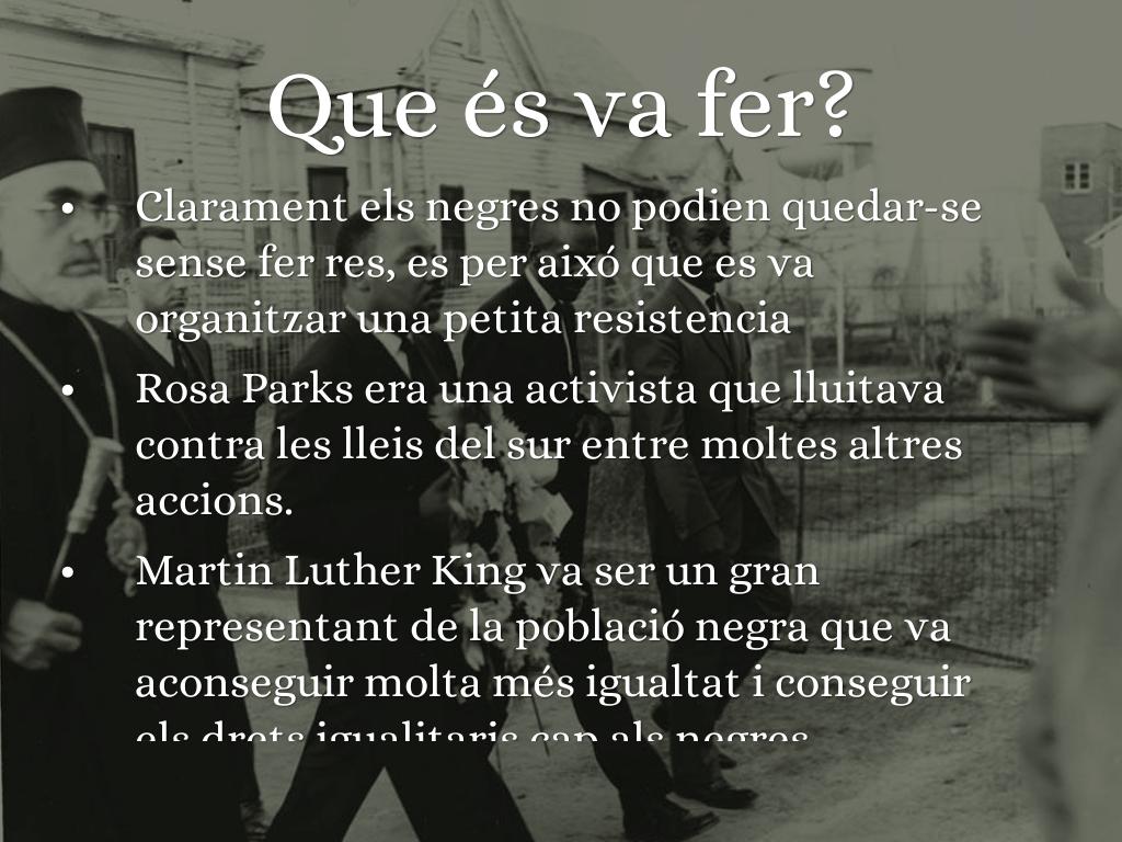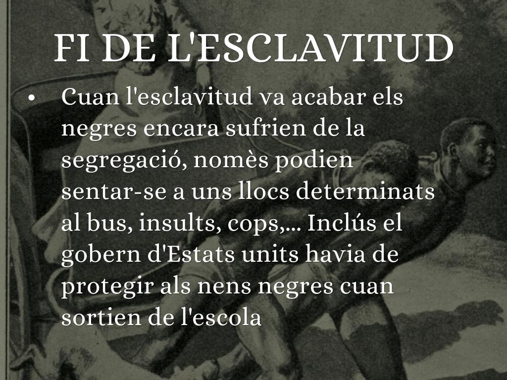 Cuan l'esclavitud va acabar els negres encara sufrien de la segregació, nomès podien sentar-se a uns llocs determinats al bus, insults, cops,... Inclús el gobern d'Estats units havia de protegir als nens negres cuan sortien de l'escola