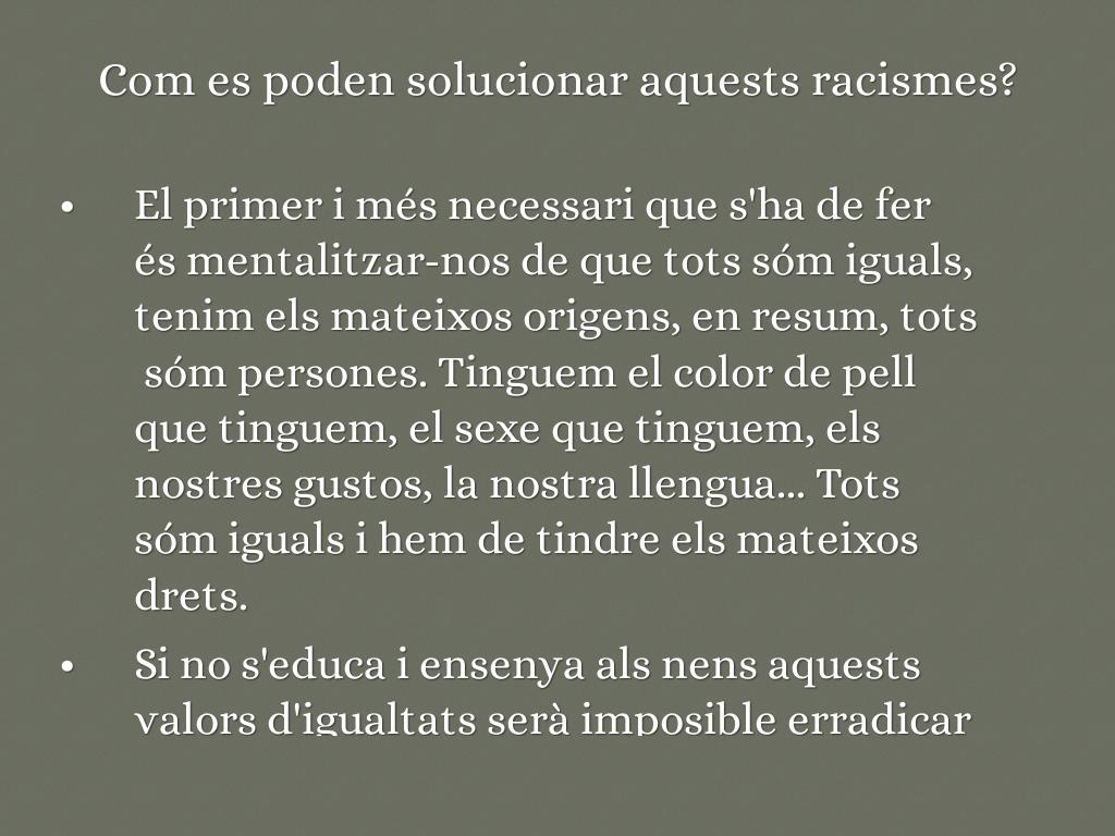 Si no s'educa i ensenya als nens aquests valors d'igualtats serà imposible erradicar el racisme de la societat