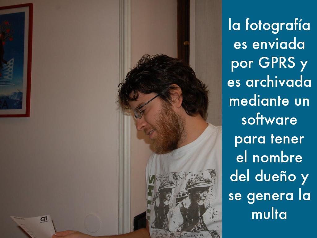 la fotografía es enviada por GPRS y es archivada mediante un software para tener el nombre del dueño y se genera la multa