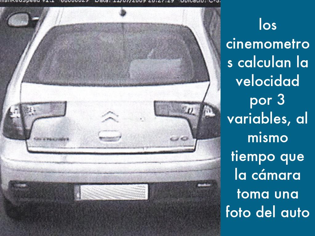 los cinemometros calculan la velocidad por 3 variables, al mismo tiempo que la cámara toma una foto del auto