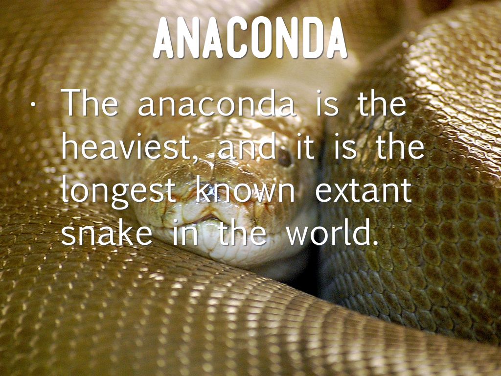 The anaconda is the heaviest, and it is the longest known extant snake in the world.