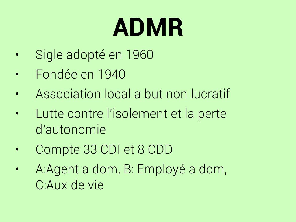 A:Agent a dom, B: Employé a dom, C:Aux de vie