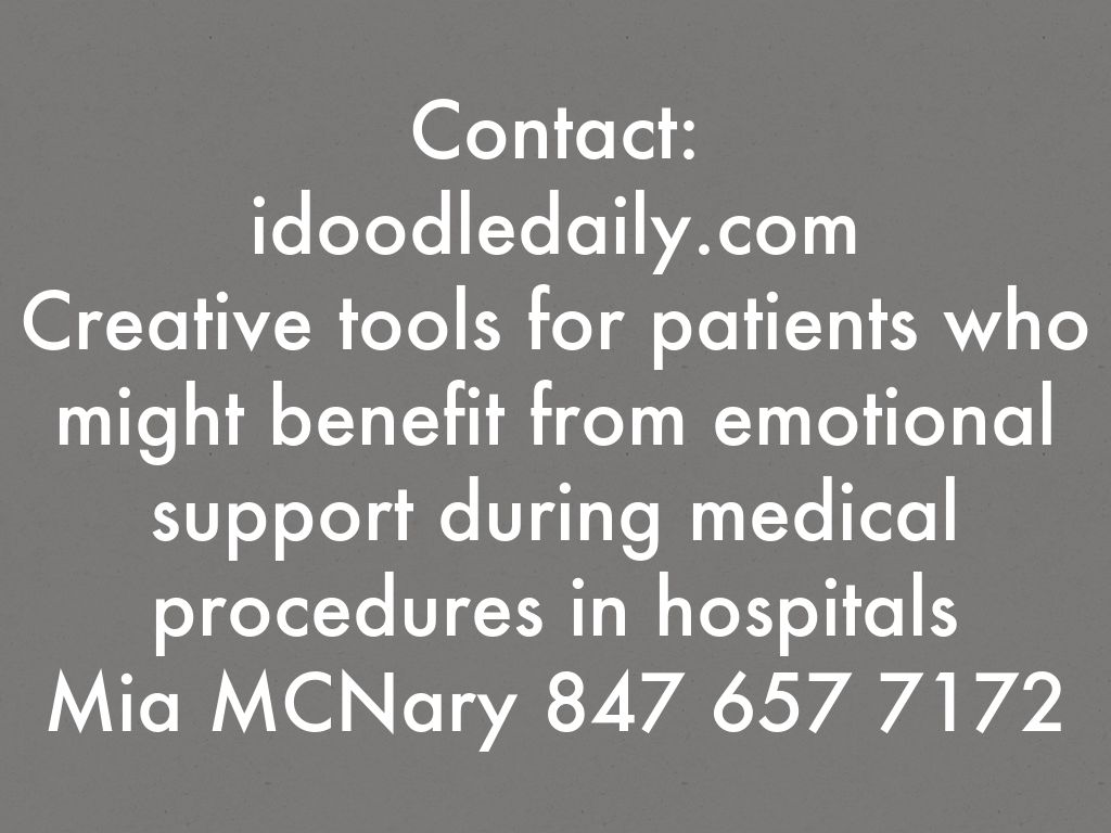 Contact: idoodledaily.com Creative tools for patients who might benefit from emotional support during medical procedures in hospitals Mia MCNary 847 657 7172