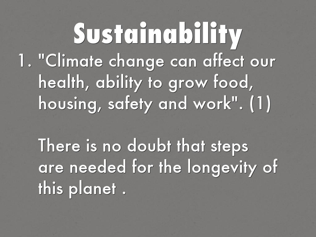 • "Climate change can affect our health, ability to grow food, housing, safety and work". (1) There is no doubt that steps are needed for the longevity of this planet .