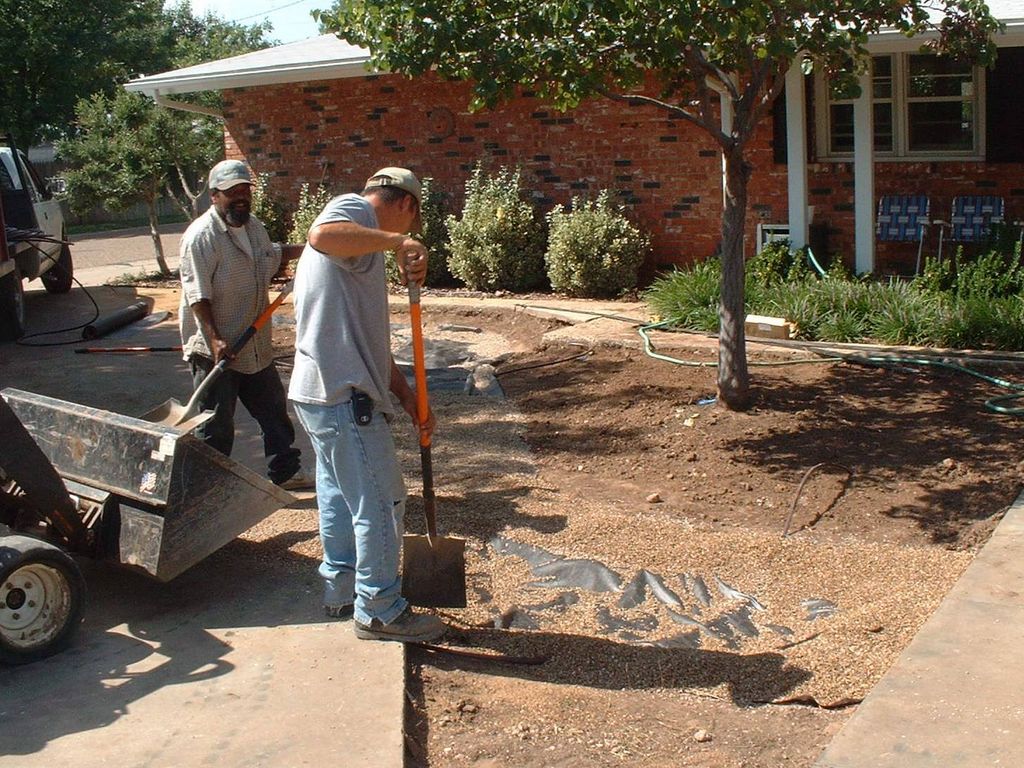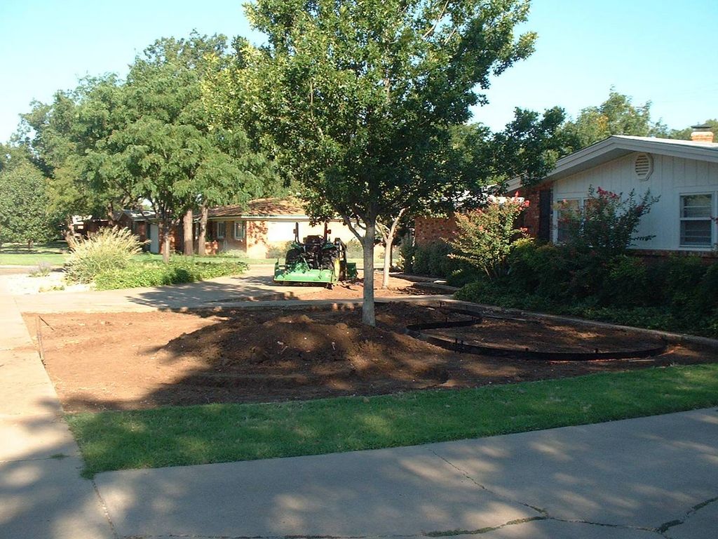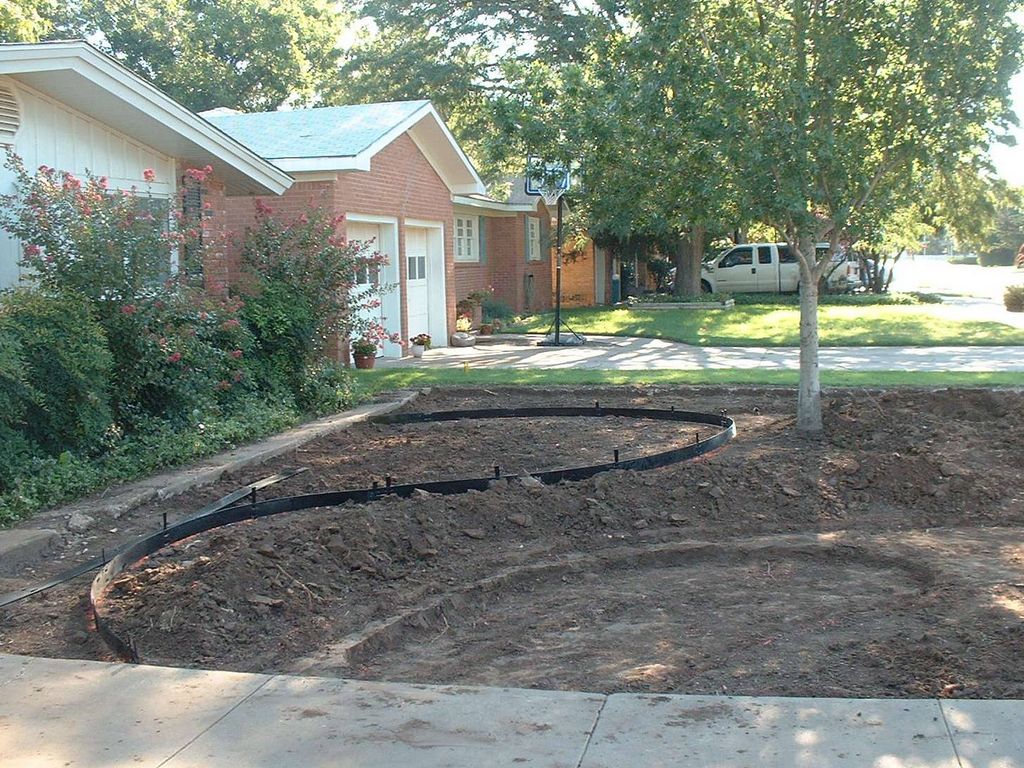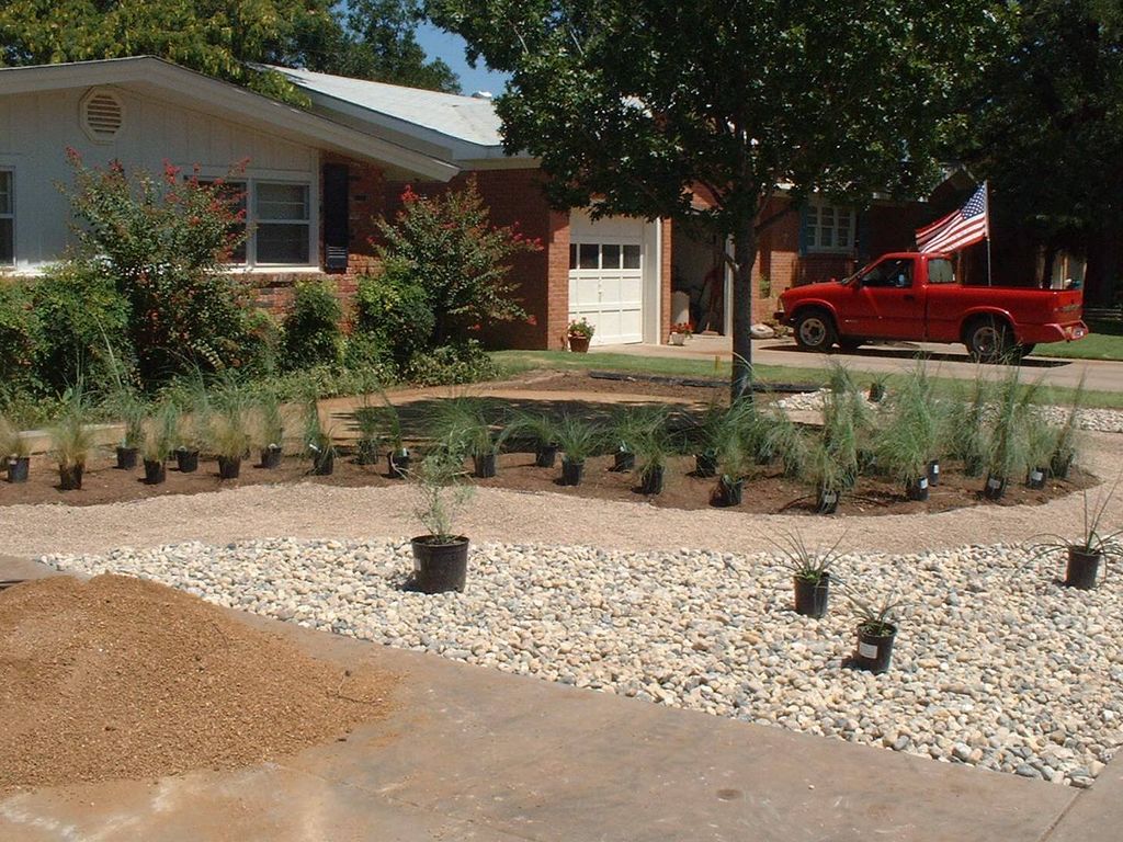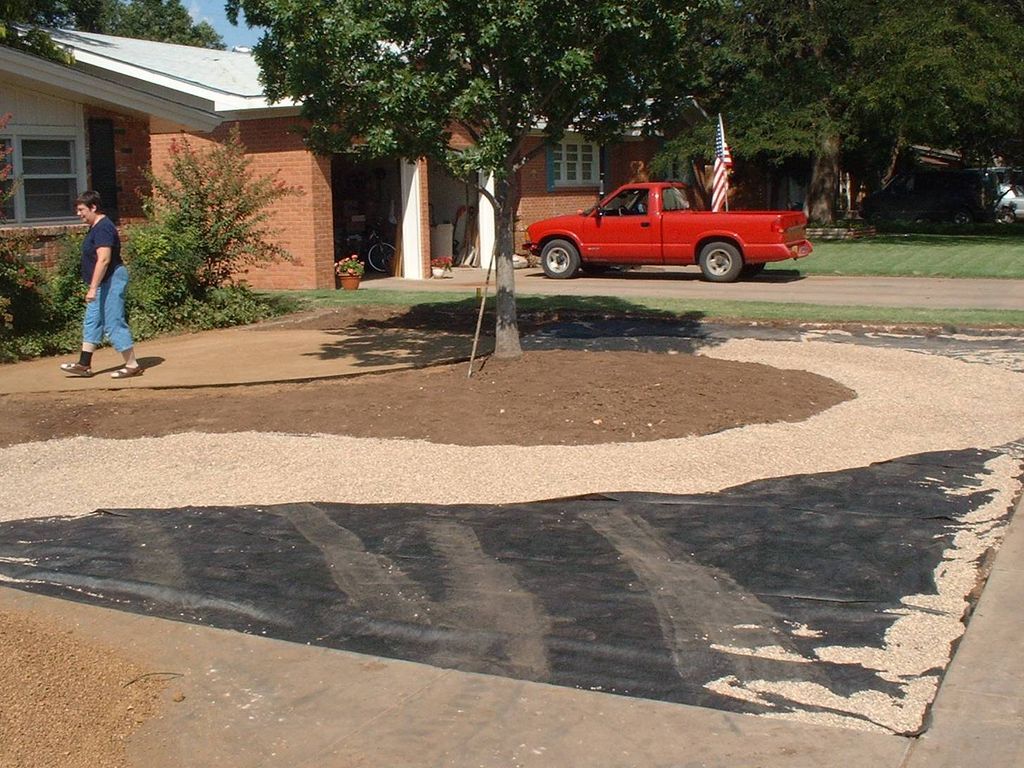 Yard after zeriscaping the “Hell Strip.” In the background, you can see the grass.