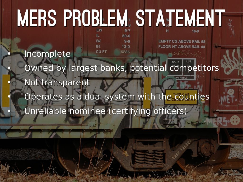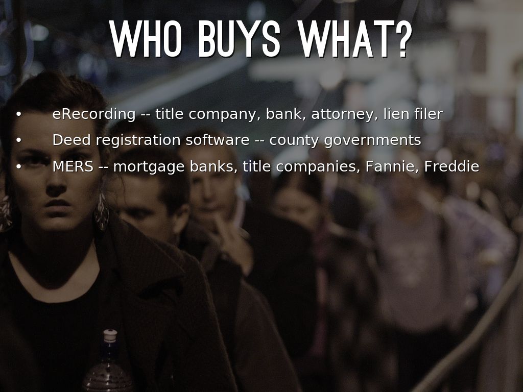 MERS -- mortgage banks, title companies, Fannie, Freddie