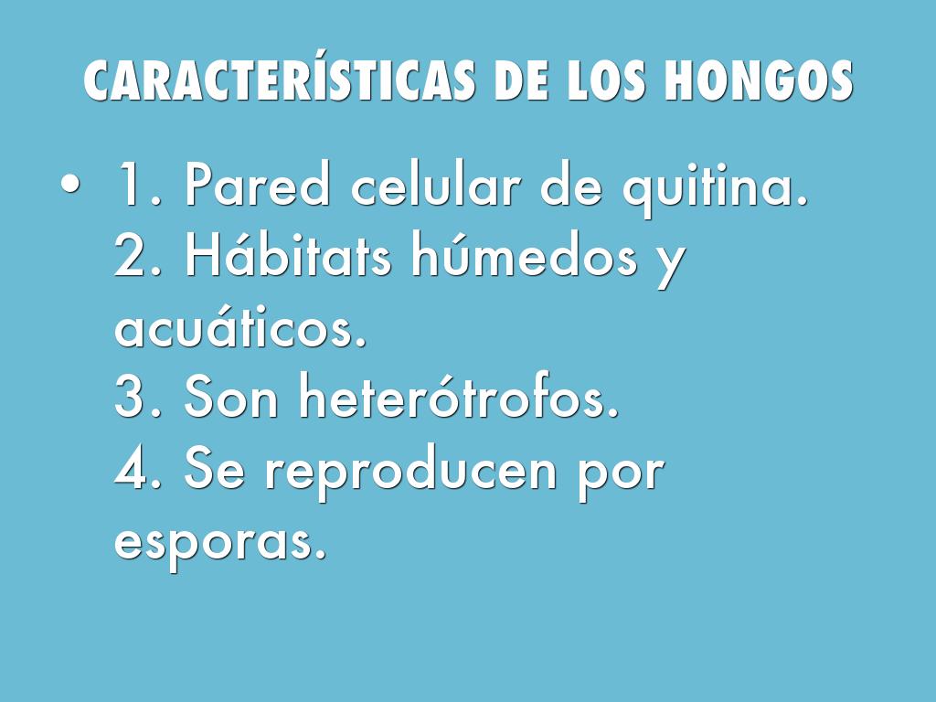 1. Sus células poseen pared celular al igual que la de las plantas, pero en vez de ser de celulosa, es de quitina.