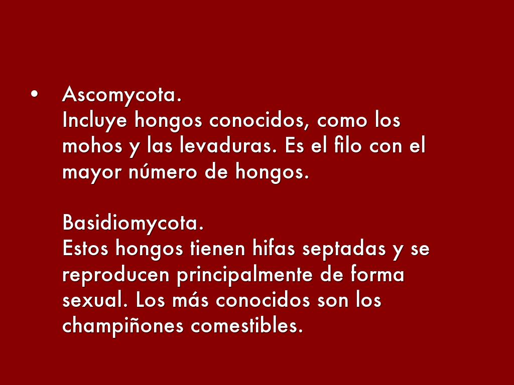 Incluye hongos conocidos, como los mohos y las levaduras. Es el filo con el mayor número de hongos.