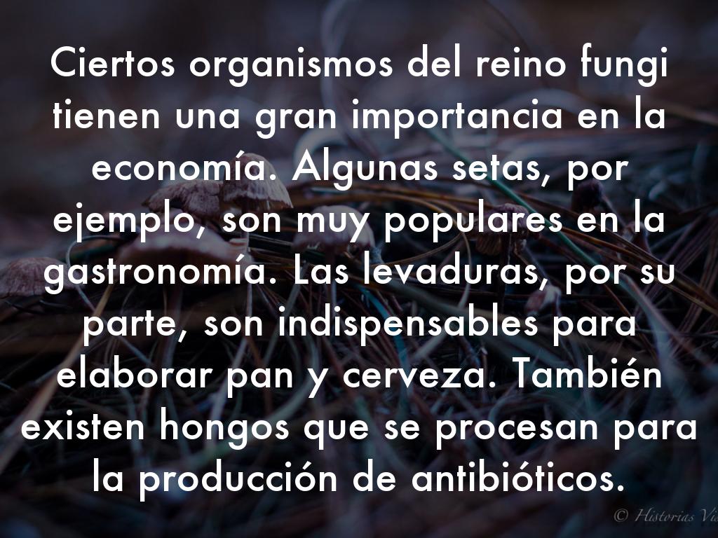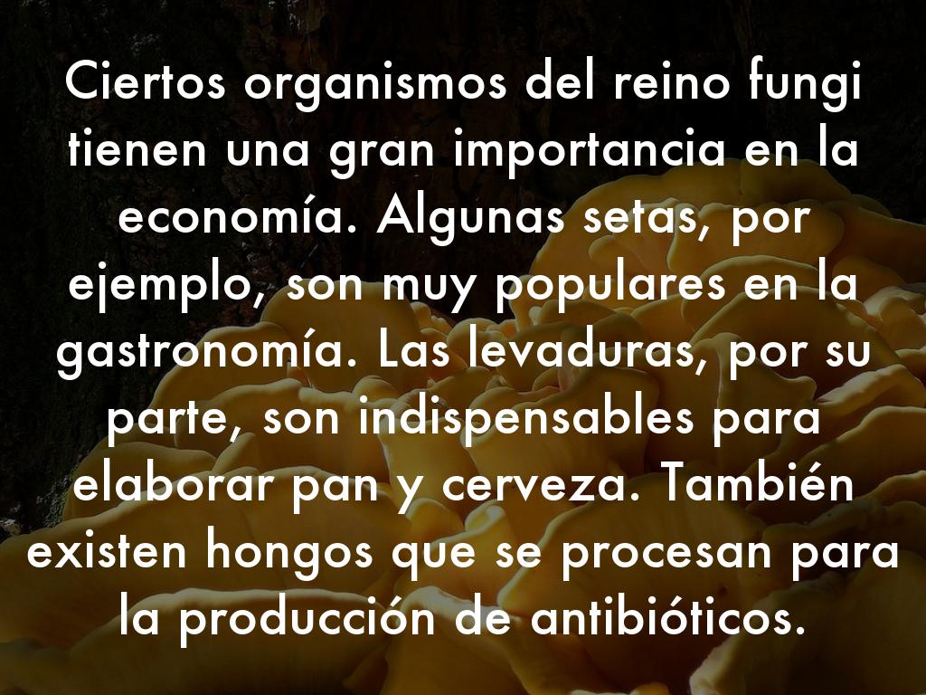 Ciertos organismos del reino fungi tienen una gran importancia en la economía. Algunas setas, por ejemplo, son muy populares en la gastronomía. Las levaduras, por su parte, son indispensables para elaborar pan y cerveza. También existen hongos que se procesan para la producción de antibióticos.