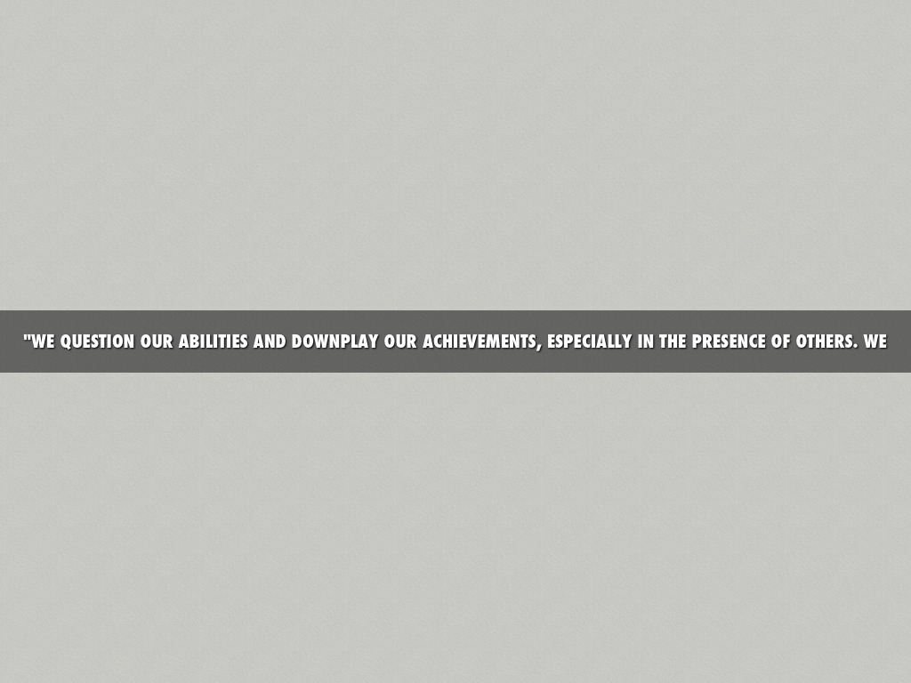 "WE QUESTION OUR ABILITIES AND DOWNPLAY OUR ACHIEVEMENTS, ESPECIALLY IN THE PRESENCE OF OTHERS. WE