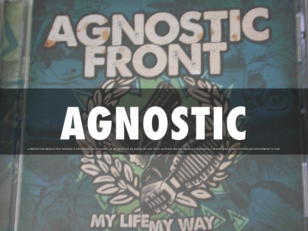 A PERSON WHO BELIEVES THAT NOTHING IS KNOWN OR CAN BE KNOWN OF THE EXISTENCE OR NATURE OF GOD OR OF ANYTHING BEYOND MATERIAL PHENOMENA; A PERSON WHO CLAIMS NEITHER FAITH NOR DISBELIEF IN GOD.
