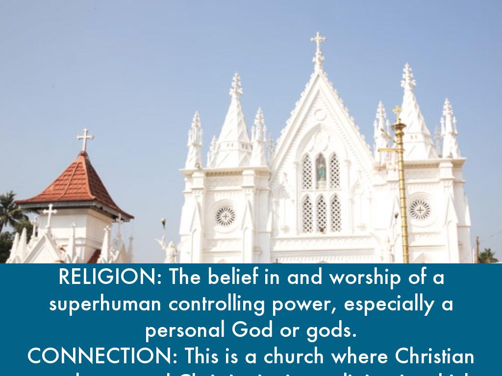 CONNECTION: This is a church where Christian people go, and Christianity is a religion in which you believe in a god.