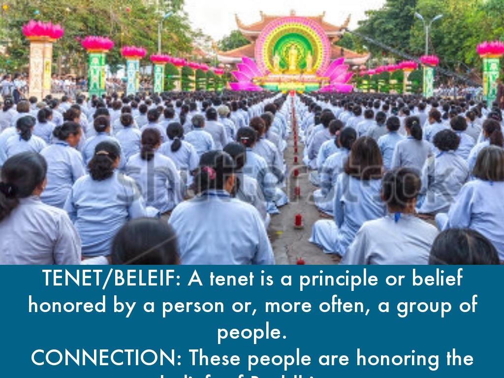 TENET/BELEIF: A tenet is a principle or belief honored by a person or, more often, a group of people.