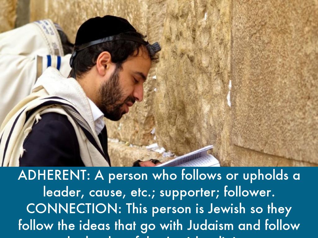 CONNECTION: This person is Jewish so they follow the ideas that go with Judaism and follow the leader of the Jewish religion.