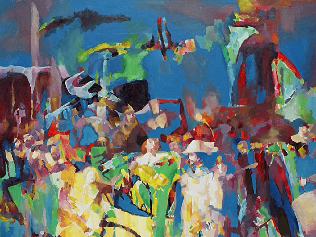 - Oil painting by Vladimir Zunuzin with same title - easier to make connection, impressionist piece that follows the general composition and color and style adds to the sense of action