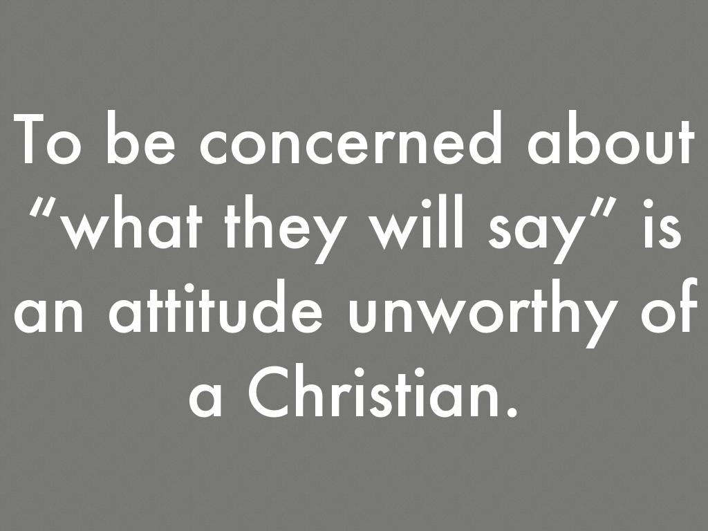 To be concerned about “what they will say” is an attitude unworthy of a Christian.