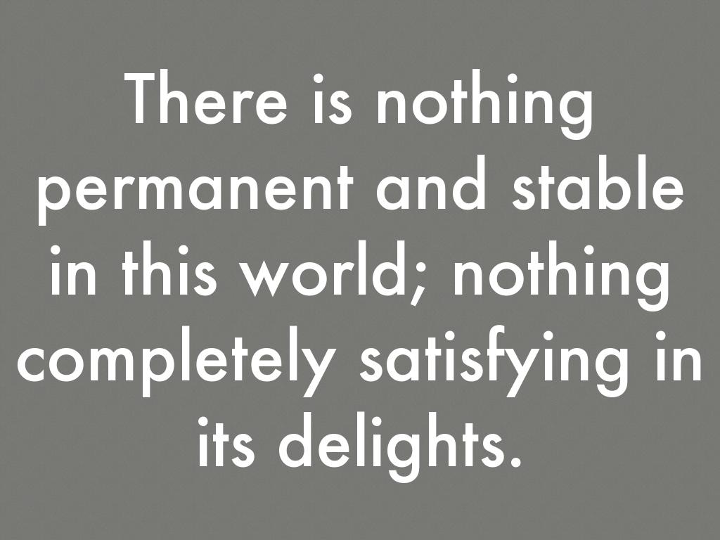 There is nothing permanent and stable in this world; nothing completely satisfying in its delights.