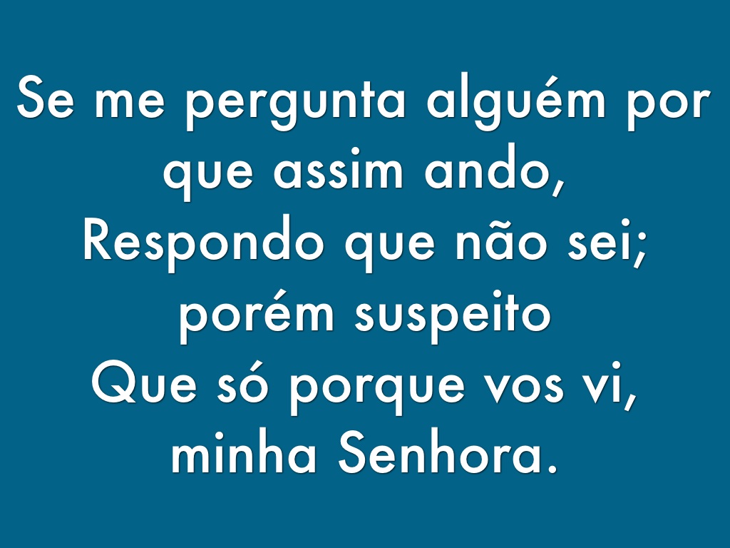 Que só porque vos vi, minha Senhora.