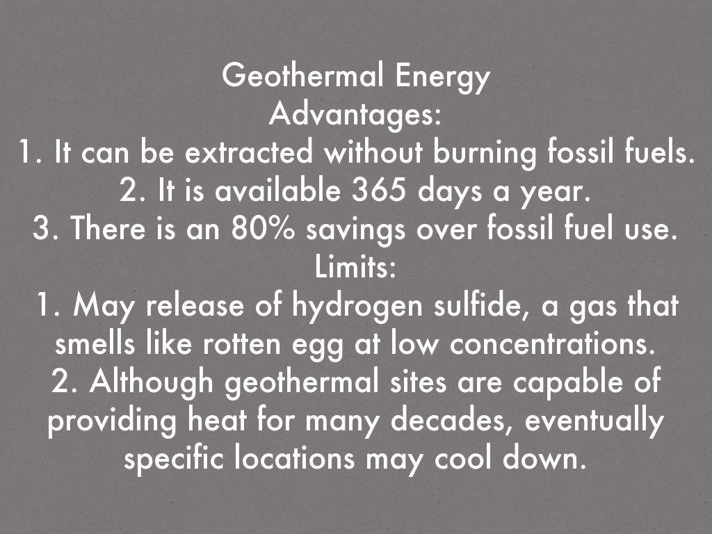 2. Although geothermal sites are capable of providing heat for many decades, eventually specific locations may cool down.