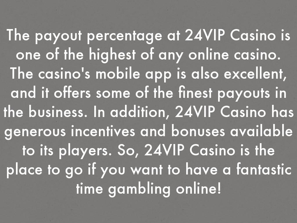 The payout percentage at 24VIP Casino is one of the highest of any online casino. The casino's mobile app is also excellent, and it offers some of the finest payouts in the business. In addition, 24VIP Casino has generous incentives and bonuses available to its players. So, 24VIP Casino is the place to go if you want to have a fantastic time gambling online!
