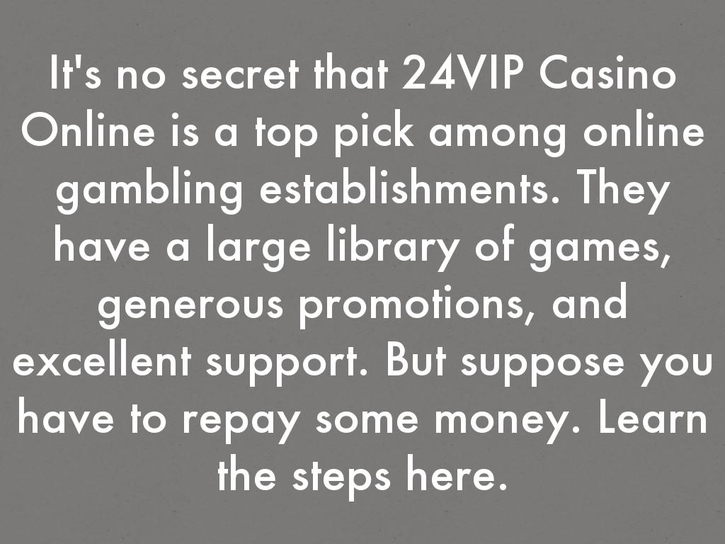 It's no secret that 24VIP Casino Online is a top pick among online gambling establishments. They have a large library of games, generous promotions, and excellent support. But suppose you have to repay some money. Learn the steps here.