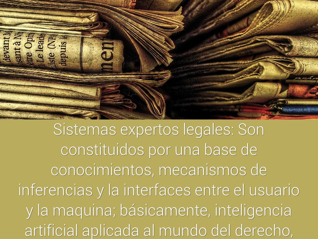Sistemas expertos legales: Son constituidos por una base de conocimientos, mecanismos de inferencias y la interfaces entre el usuario y la maquina; básicamente, inteligencia artificial aplicada al mundo del derecho, eventualmente puede coadyuvar en procesos de educación y de investigación para toma de decisiones judiciales.