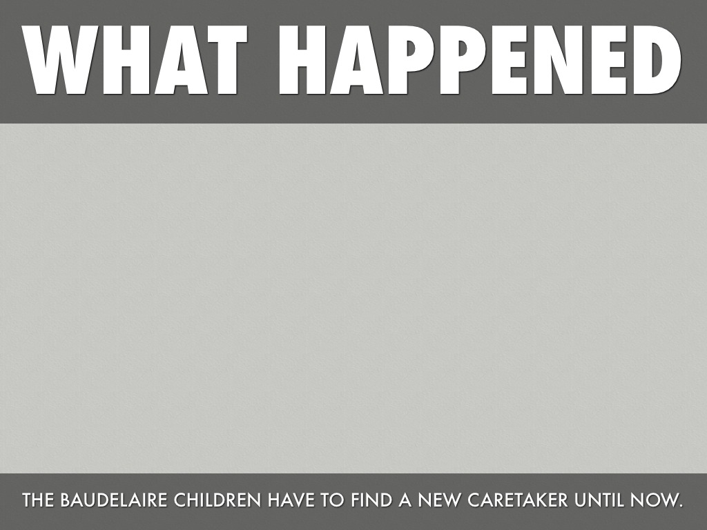 THE BAUDELAIRE CHILDREN HAVE TO FIND A NEW CARETAKER UNTIL NOW.