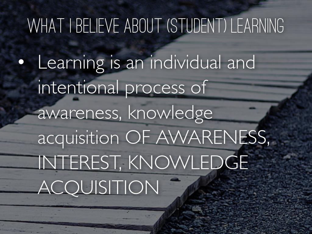 Learning is an individual and intentional process of awareness, knowledge acquisition OF AWARENESS, INTEREST, KNOWLEDGE ACQUISITION