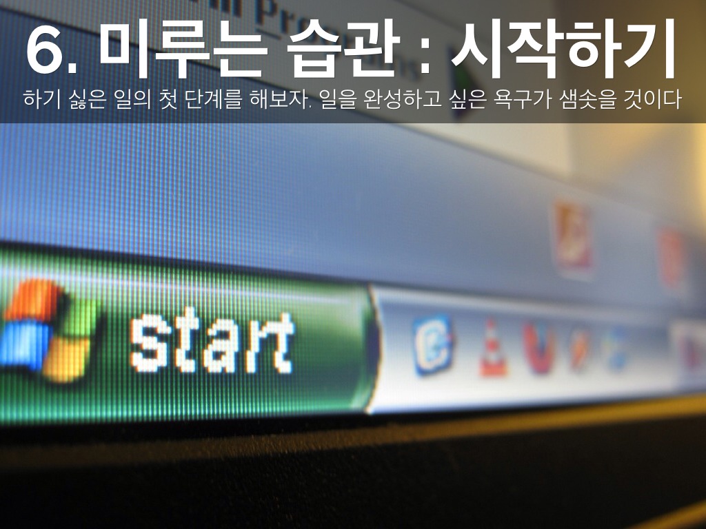 하기 싫은 일의 첫 단계를 해보자. 일을 완성하고 싶은 욕구가 샘솟을 것이다