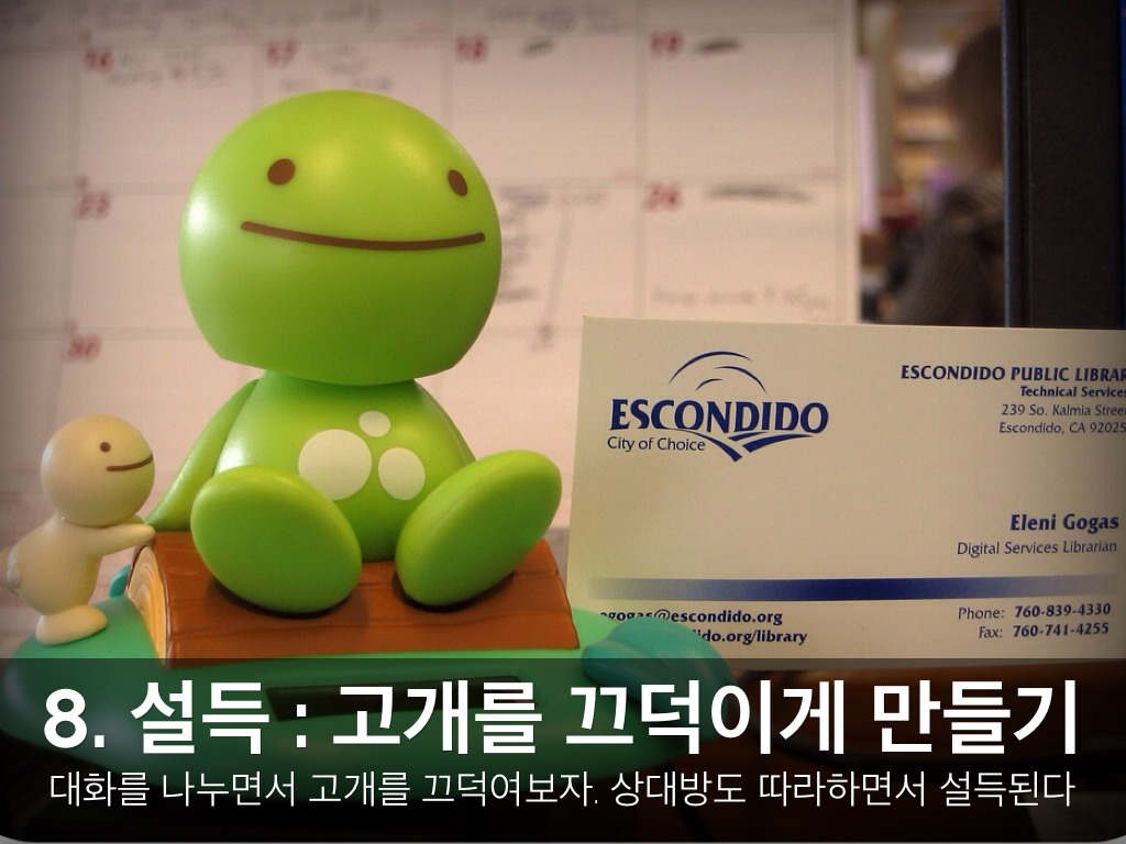 대화를 나누면서 고개를 끄덕여보자. 상대방도 따라하면서 설득된다