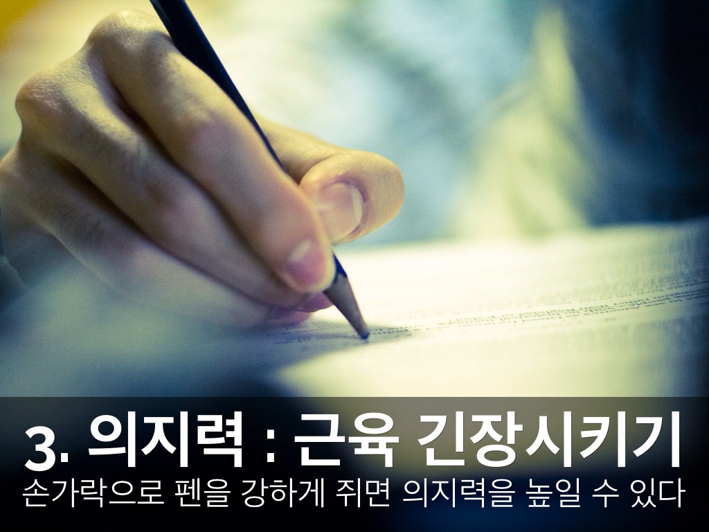 손가락으로 펜을 강하게 쥐면 의지력을 높일 수 있다