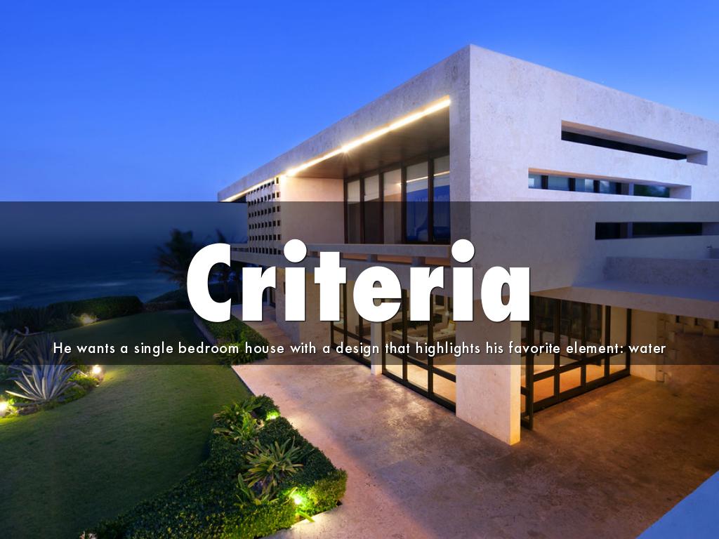 He wants a single bedroom house with a design that highlights his favorite element: water