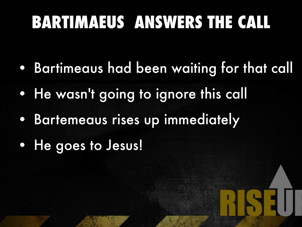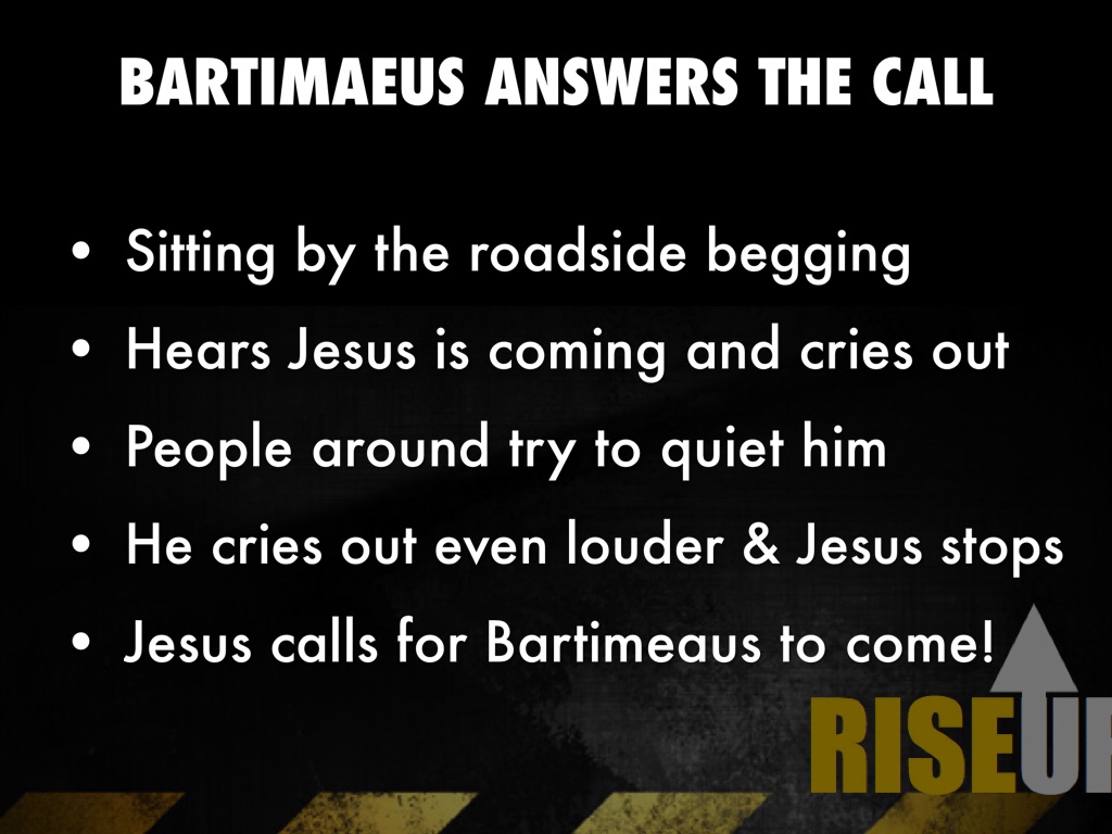 - Jesus calls for Bartimeaus to come!