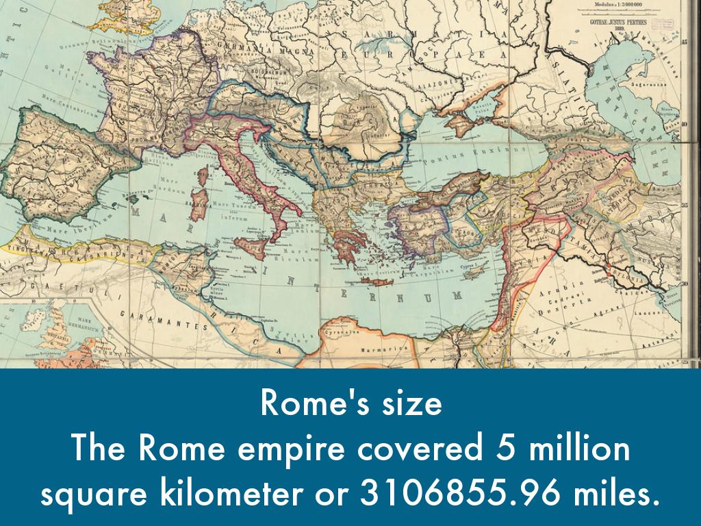 The Rome empire covered 5 million square kilometer or 3106855.96 miles.