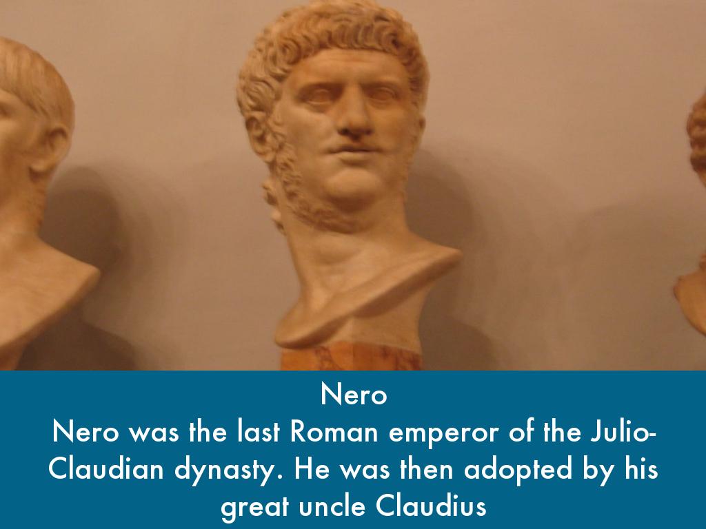 Nero was the last Roman emperor of the Julio-Claudian dynasty. He was then adopted by his great uncle Claudius