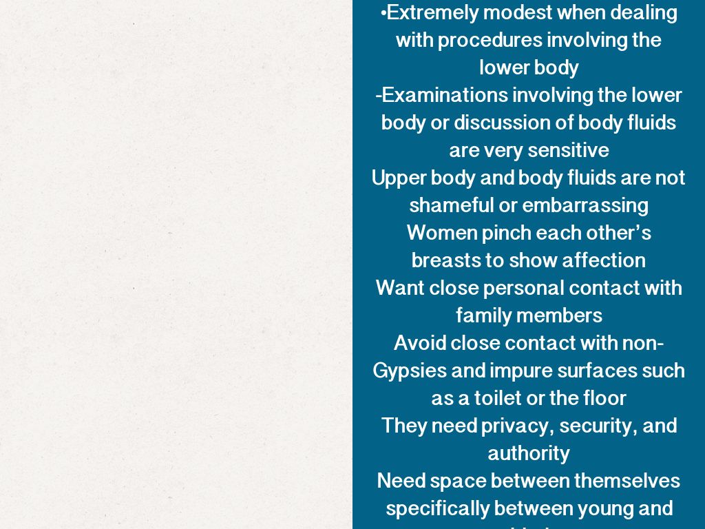 -Examinations involving the lower body or discussion of body fluids are very sensitive