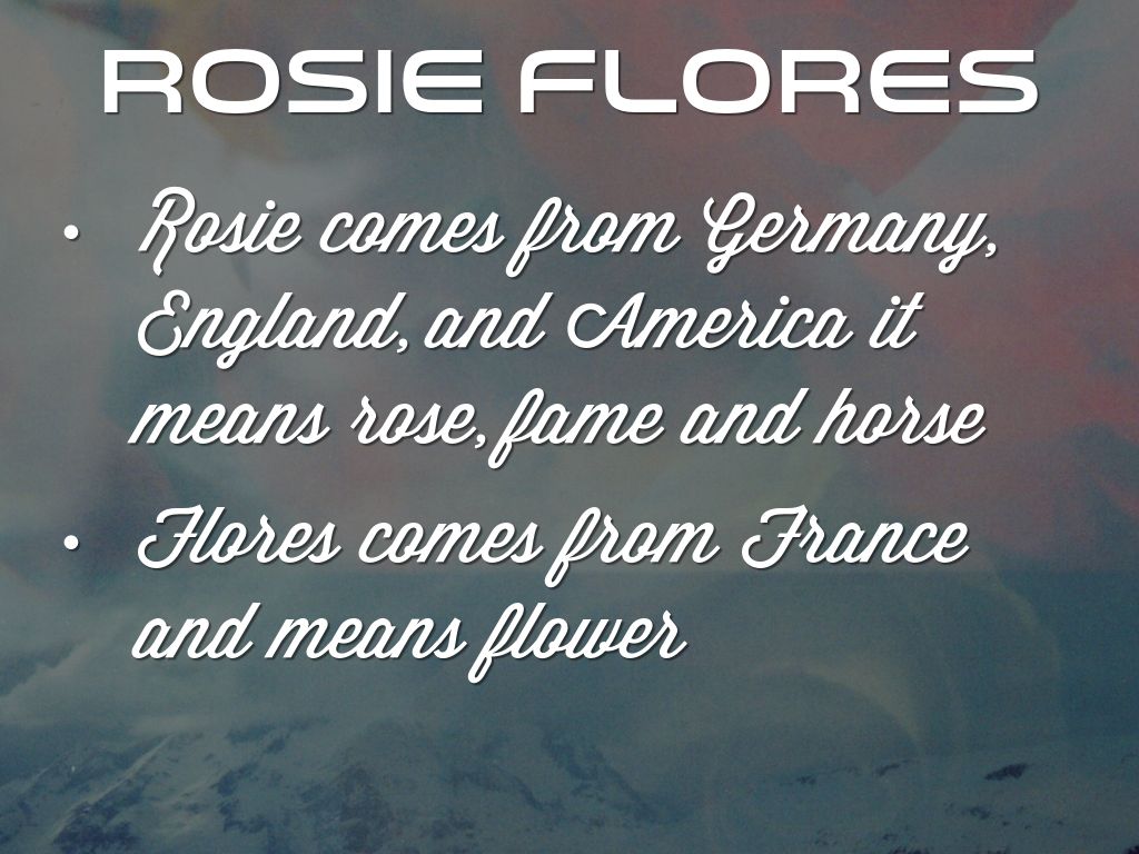Rosie comes from Germany, England, and America it means rose, fame and horse
