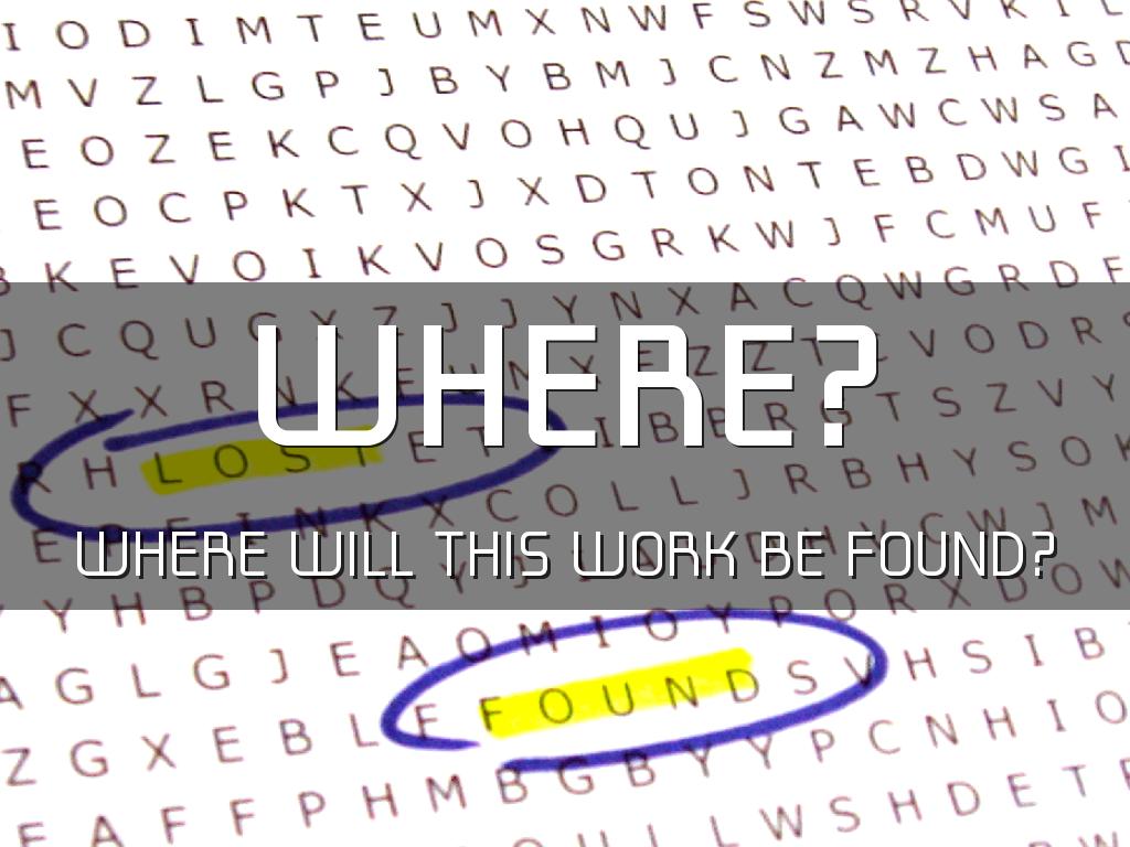 WHERE WILL THIS WORK BE FOUND?