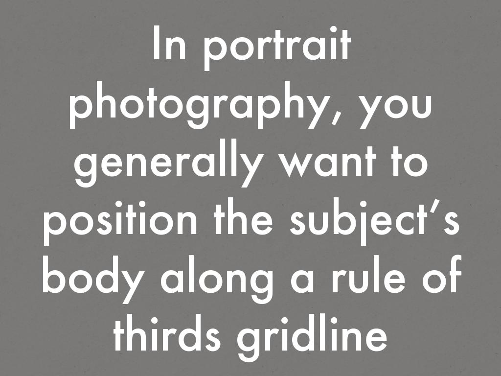 In portrait photography, you generally want to position the subject’s body along a rule of thirds gridline