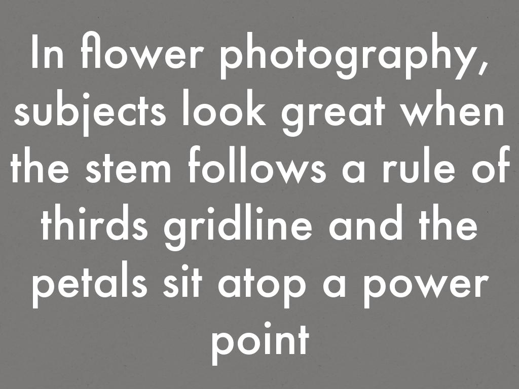 In flower photography, subjects look great when the stem follows a rule of thirds gridline and the petals sit atop a power point