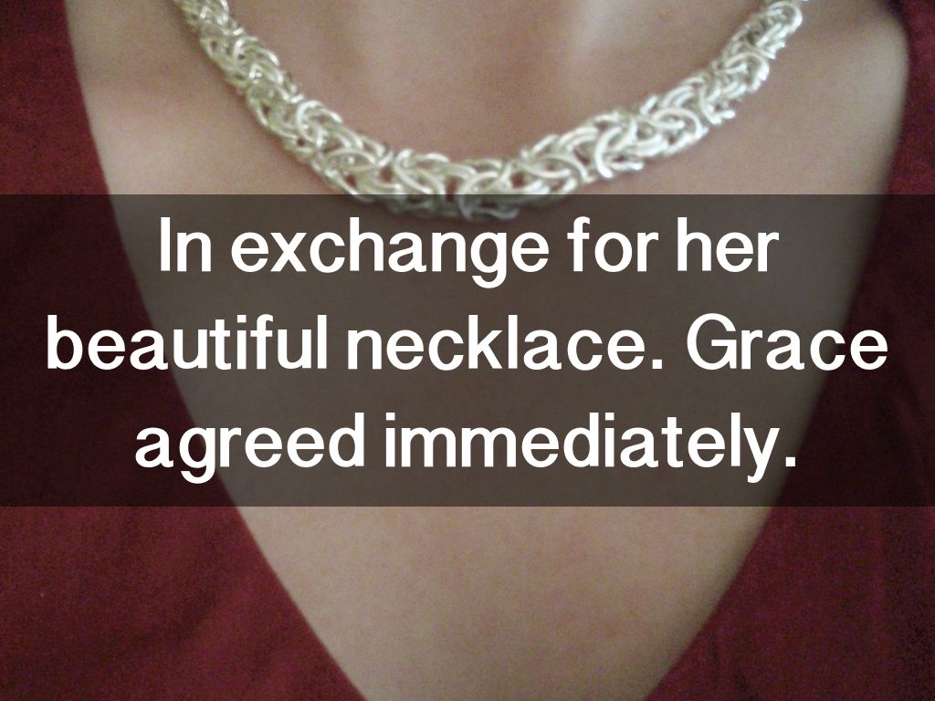In exchange for her beautiful necklace. Grace agreed immediately.