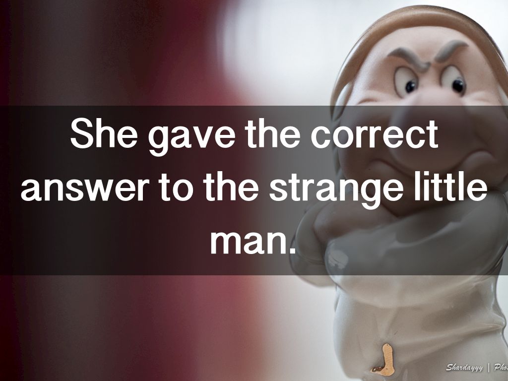 She gave the correct answer to the strange little man.