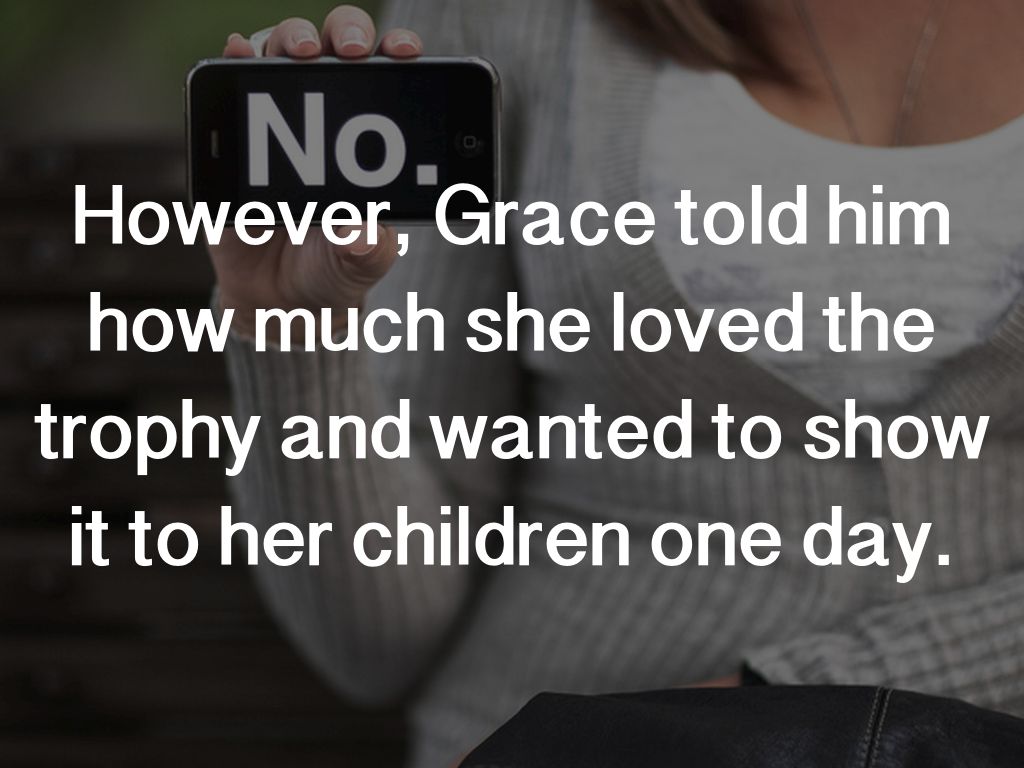 However, Grace told him how much she loved the trophy and wanted to show it to her children one day.