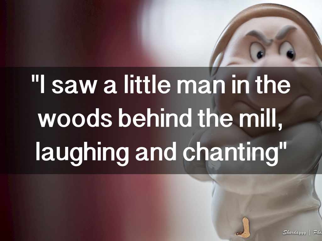 "I saw a little man in the woods behind the mill, laughing and chanting"